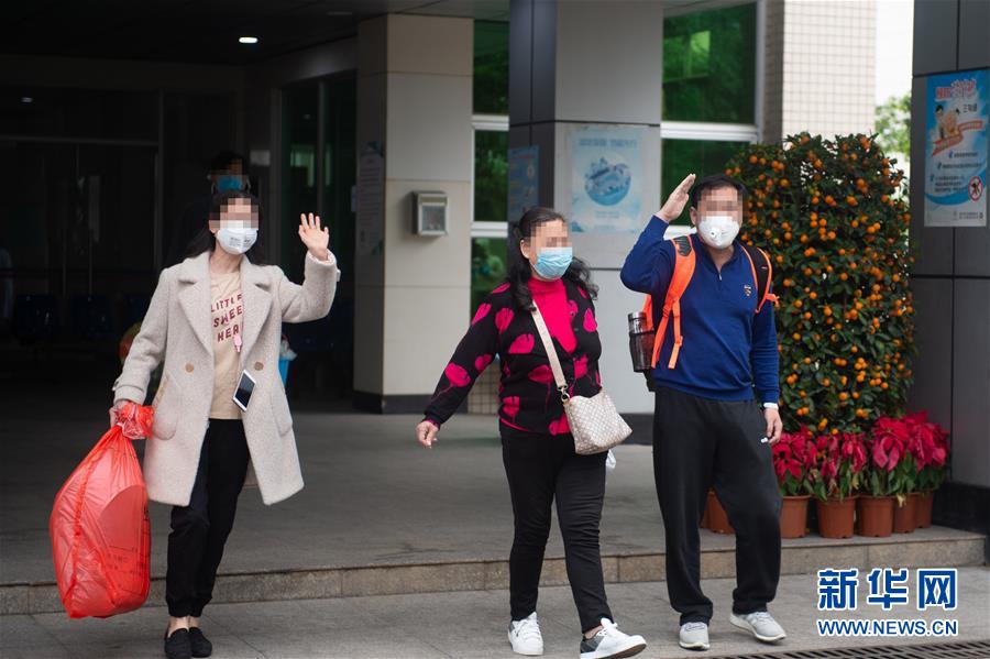 2月16日,新冠肺炎治愈患者从海南省人民医院出院。 当日,在海南省人民医院,12名新冠病毒肺炎确诊患者经过医院系统诊治后,痊愈出院。 新华社发 (张丽芸 摄)