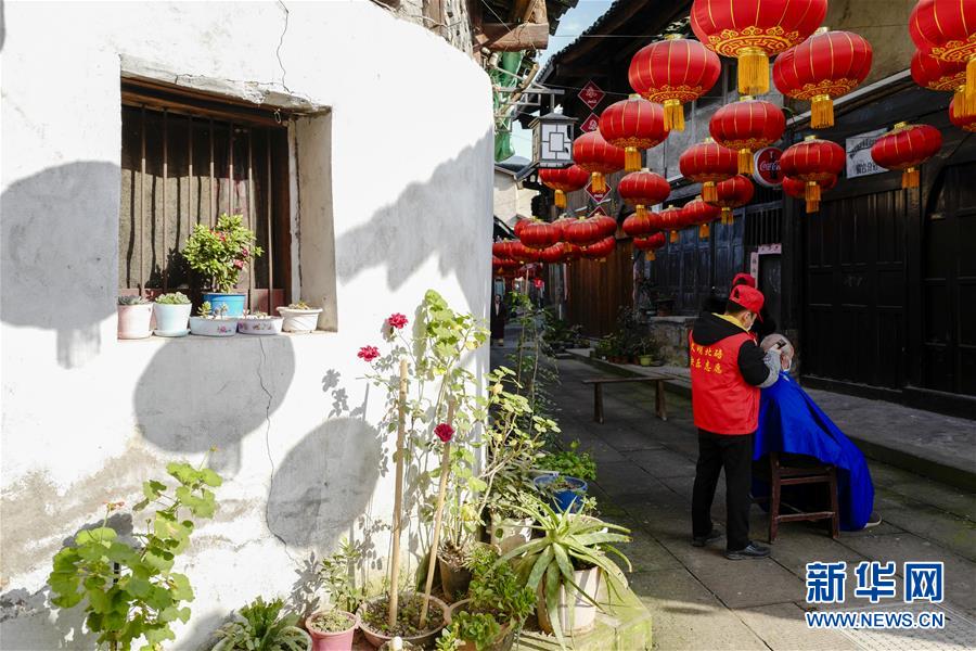 2月16日,社区志愿者理发服务队队员陈一波(左)为当地居民免费理发。 近期,由于疫情防控需要,许多理发店暂停营业。重庆市北碚区金刀峡镇偏岩社区的社区工作者组织了一支志愿者理发服务队,深入社区提供免费理发服务,受到群众的欢迎。 新华社记者 刘潺 摄