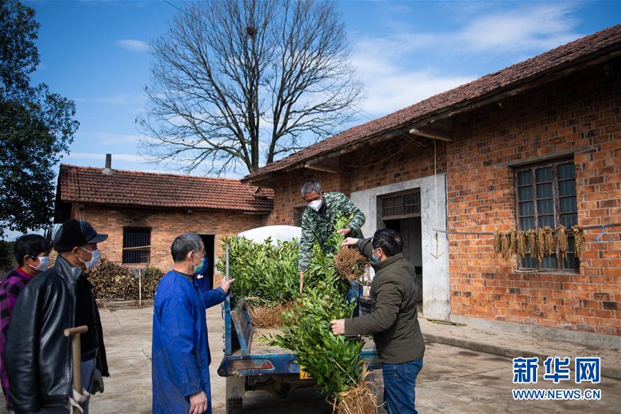 2月16日,在湖南澧县如东镇长福村,村干部把柑橘苗送到村民家中。 正值春耕时节,湖南省澧县如东镇长福村引导村民种植优质柑橘,田间地头随处可见村民忙碌的身影。据了解,长福村本次春耕计划种植优质柑橘300余亩。 新华社发(陈思汗 摄)