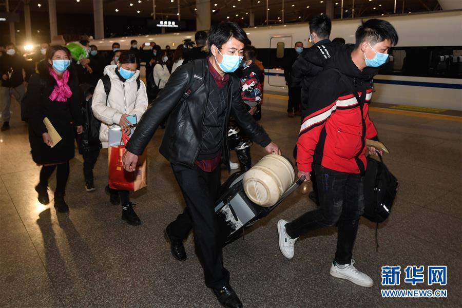 在杭州东站,从贵州乘坐外地复工人员专列抵达杭州的复工人员有序出站(2月16日摄)。出站后,这些员工将直接被所在的企业接回。 2月16日22时7分,载有近300名贵州籍旅客的G4138次列车到达杭州东站。这是铁路部门为服务企业外地员工返程而开行的首趟定制专列。 新华社记者 黄宗治 摄