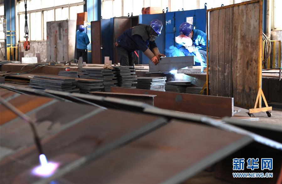 2月17日,中铁四局钢结构建筑公司工人加工淠河总干渠渡槽杆件。新华社记者 刘军喜 摄