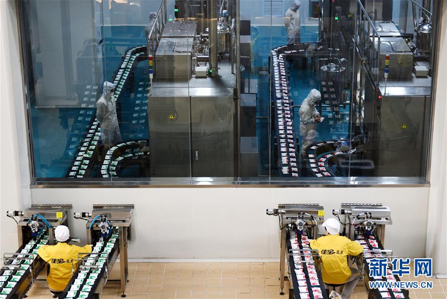 2月17日,工人在济南佳宝乳业有限公司生产车间内工作。 近期,山东省济南市长清区在防控新冠肺炎疫情的同时,选派工作人员“下沉一线”,为企业提供一对一服务,协调企业开工复产所面临的原材料、物流运输、用工等方面的难题。目前,长清区156家规模以上工业企业实现全面复工,限额以上贸易企业复工78家,复工率93%。 新华社记者 朱峥 摄
