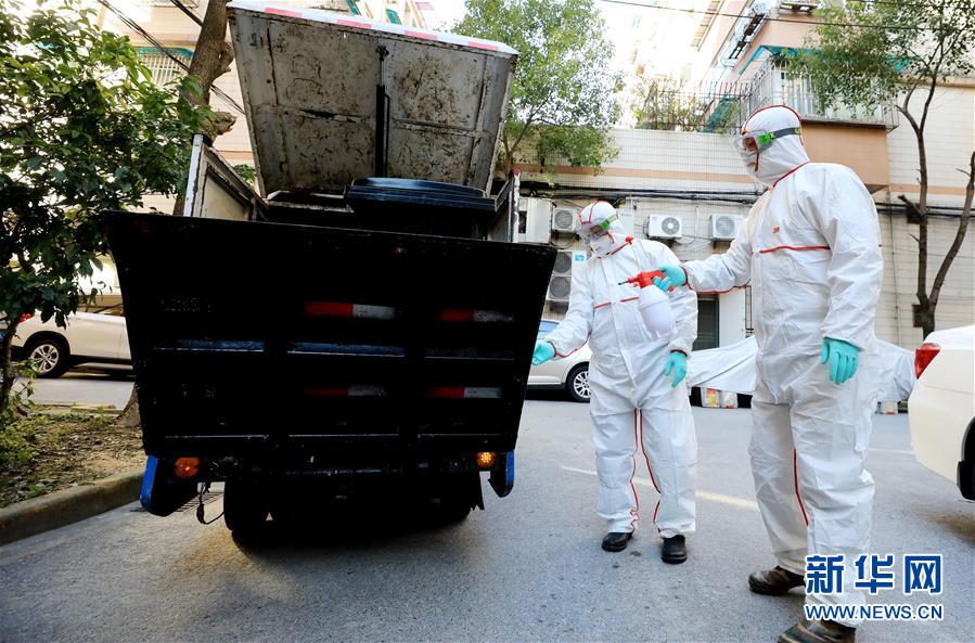 2月17日,上海市黄浦区五里桥街道申杰物业公司工作人员对作业车辆进行喷洒消毒。 在防控疫情的工作中,上海市黄浦区五里桥街道从社工到物业公司员工,坚持疫情防控和生活保障两手抓,在防疫同时为居民提供服务。 新华社记者 方喆 摄