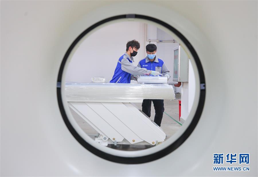 2月17日,沈阳开普医疗影像技术有限公司工作人员对捐赠的CT设备进行包装。新华社记者 龙雷 摄