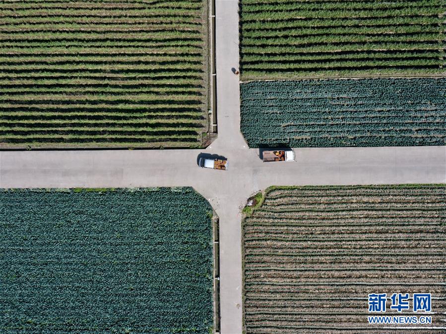 这是2月18日拍摄的漳州市东园现代农业示范区内的千亩蔬菜基地(无人机照片)。 连日来,全国冬季“南菜北调”重要供应基地福建省漳州市全力组织蔬菜产品生产,确保疫情防控期间稳产保供。同时出台措施,为蔬菜外销开通绿色通道。据统计,2月以来,漳州市每日采收蔬菜5000吨以上,约一半产量供应外地市场。 新华社记者 姜克红 摄