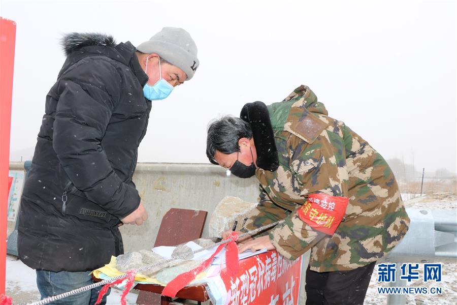 2月13日,内蒙古兴安盟科尔沁右翼前旗的脱贫户白胡胜(右)在一处执勤点执勤。新华社发(苏雅拉其其格 摄)