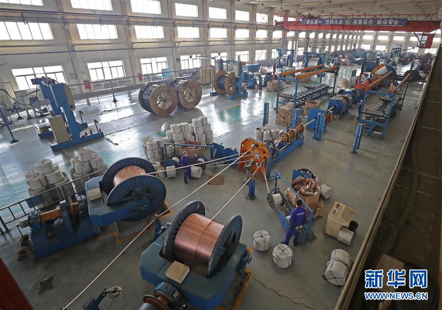 2月19日,沈缆四环电缆制造有限公司工人在车间生产电缆。新华社记者 杨青 摄