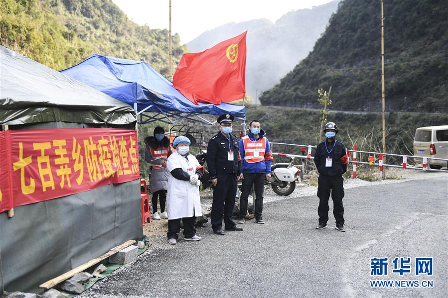 广西大化瑶族自治县七百弄乡的党员、干部在关键路口的防疫检查点值班(2月17日摄)。新华社记者 曹祎铭 摄