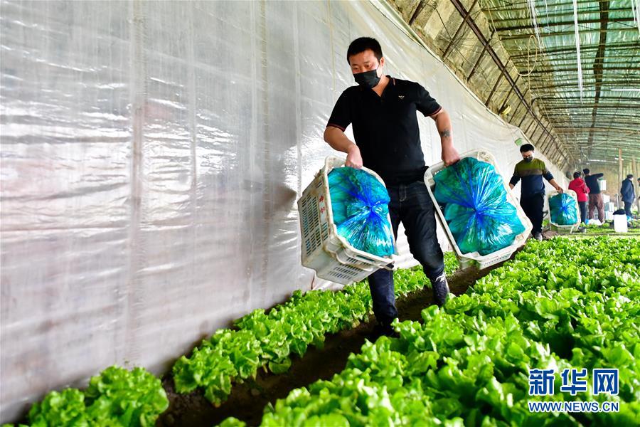 2月19日,太原市晋源区晋祠镇南张村的村民将打包好的生菜运出大棚。 近期,山西省太原市在做好新冠肺炎疫情防控的前提下,积极开展农业生产。 新华社记者 曹阳 摄