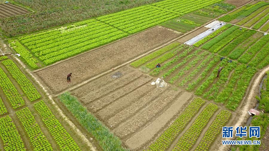 2月19日,广西贺州市八步区莲塘镇螺桥村农民在田间劳作(无人机照片)。新华社发(廖祖平 摄)