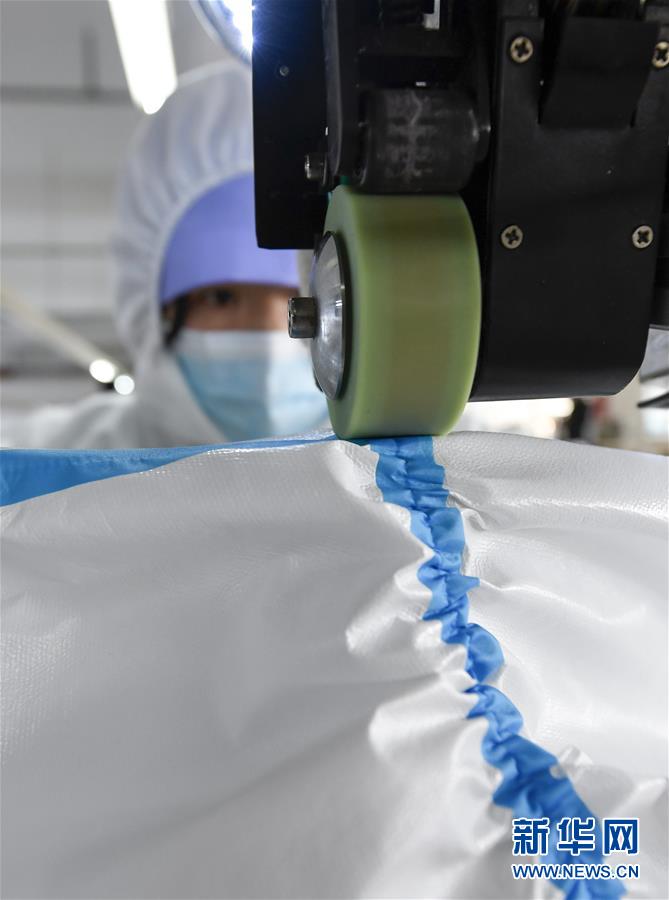 2月19日,一名工人在宁夏汇川服装有限公司生产车间密封民用隔离服胶条。 近日,位于银川市的宁夏汇川服装有限公司积极组织员工复工并转产赶制民用隔离服。据了解,该公司是一家具有特种劳动防护用品生产资质的企业。为保障疫情期间当地防护用品供应,公司加快设计研发民用隔离服,目前已搭建3条生产流水线,近60名员工日产民用隔离服500-700套。 新华社记者冯开华摄