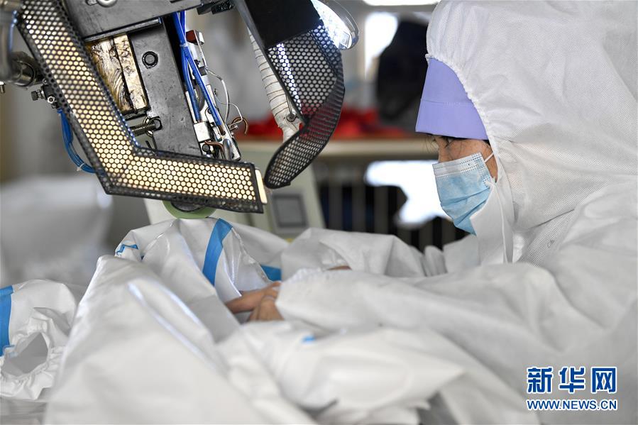 2月19日,工人在宁夏汇川服装有限公司生产车间密封民用隔离服胶条。 近日,位于银川市的宁夏汇川服装有限公司积极组织员工复工并转产赶制民用隔离服。据了解,该公司是一家具有特种劳动防护用品生产资质的企业。为保障疫情期间当地防护用品供应,公司加快设计研发民用隔离服,目前已搭建3条生产流水线,近60名员工日产民用隔离服500-700套。 新华社记者冯开华摄