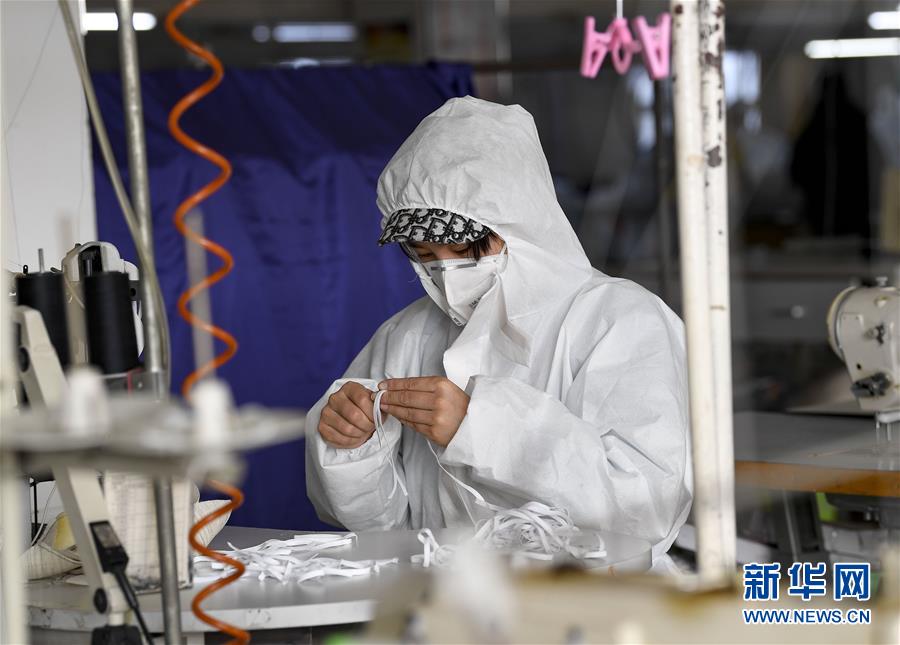 2月19日,工人在宁夏汇川服装有限公司生产车间加工民用隔离服配件。 近日,位于银川市的宁夏汇川服装有限公司积极组织员工复工并转产赶制民用隔离服。据了解,该公司是一家具有特种劳动防护用品生产资质的企业。为保障疫情期间当地防护用品供应,公司加快设计研发民用隔离服,目前已搭建3条生产流水线,近60名员工日产民用隔离服500-700套。 新华社记者冯开华摄
