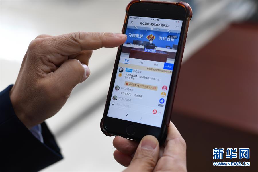 2月19日,宁波市奉化区税务局工作人员在查看网络直播时纳税人提出的问题,以备及时解答。 当日,国家税务总局宁波市奉化区税务局“光哥税务工作室”团队举办网络直播,讲解在新冠肺炎疫情防控期间国家出台的最新税收优惠政策,并与纳税人和缴费人就相关涉税问题进行在线答疑。 新华社记者 黄宗治 摄