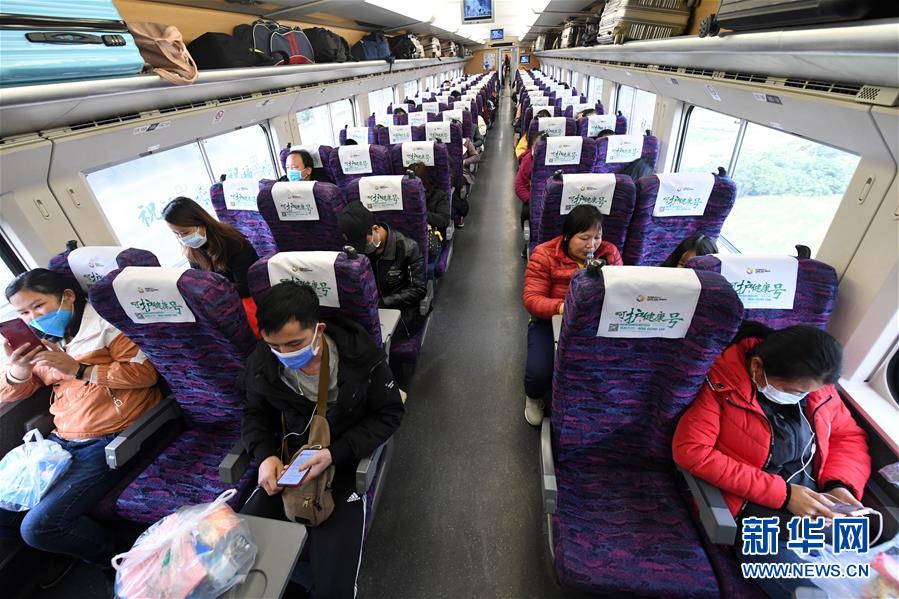 2月19日,广西百色外出务工人员在复工专列上。新华社记者 陆波岸 摄