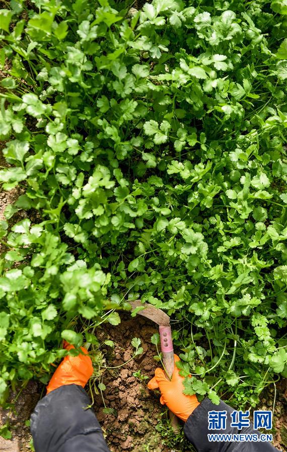 2月19日,呼和浩特市赛罕区繁茂种植专业合作社农民在收芫荽。 新冠肺炎疫情发生以来,内蒙古呼和浩特市青城金谷农牧业发展有限公司落实政府疫情防控决策部署,开通“敕勒川农博商城”电商平台,为当地农牧业供应企业及合作社提供销售渠道,平台实现线上下单、商品配送到小区,切实保障了疫情期间市民蔬菜、肉蛋奶、粮油等物资的供应。据了解,目前入驻“敕勒川农博商城”的内蒙古企业已有100余家,商品500多种。 新华社记者 连振 摄
