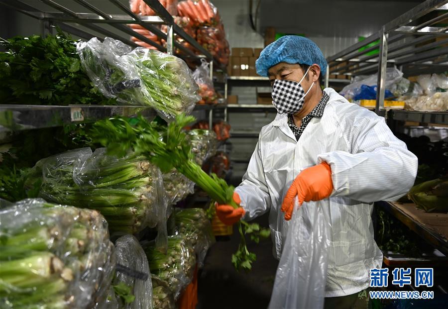 2月19日,呼和浩特市绿林源农业科技开发有限公司员工按顾客订单配菜。 新冠肺炎疫情发生以来,内蒙古呼和浩特市青城金谷农牧业发展有限公司落实政府疫情防控决策部署,开通“敕勒川农博商城”电商平台,为当地农牧业供应企业及合作社提供销售渠道,平台实现线上下单、商品配送到小区,切实保障了疫情期间市民蔬菜、肉蛋奶、粮油等物资的供应。据了解,目前入驻“敕勒川农博商城”的内蒙古企业已有100余家,商品500多种。 新华社记者 任军川 摄
