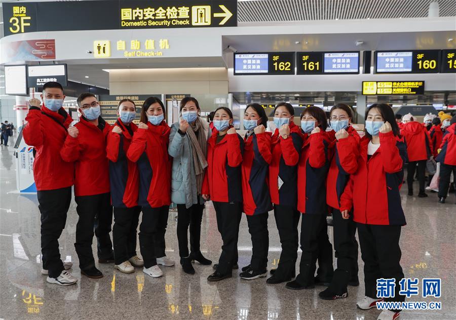 2月19日,在重庆江北国际机场,重庆市第十二批医疗队队员在出发前合影。新华社发(黄伟 摄)