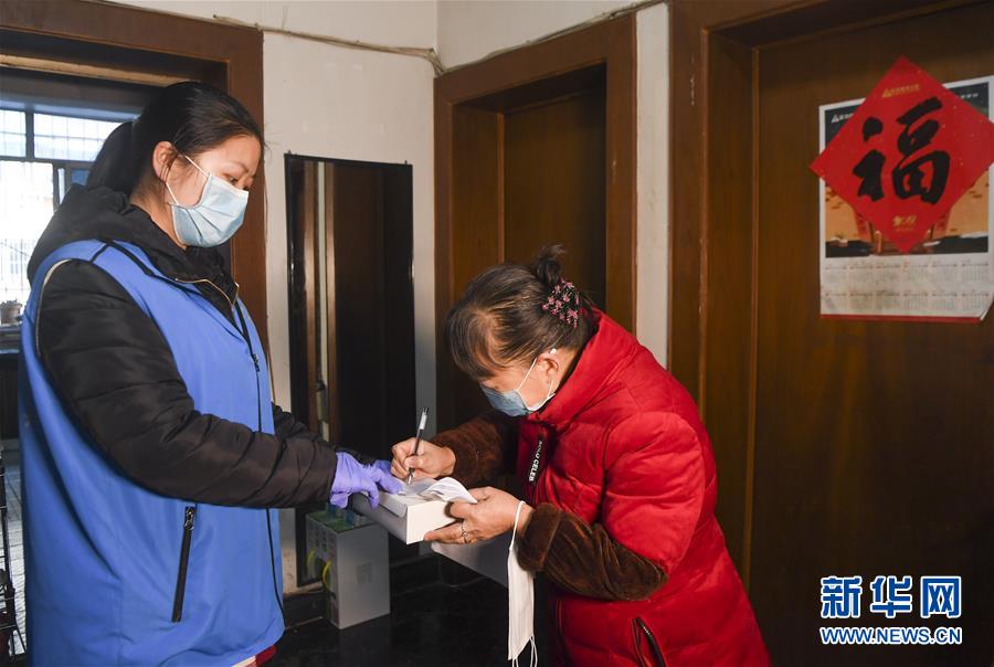 2月19日,龙塔街道工农社区工作人员(左)向居民发放口罩。 自新冠肺炎疫情发生以来,重庆市渝北区龙塔街道积极组织和发动社区工作人员、社区志愿者等基层力量,参与到宣传疫情防控、了解居民健康状况、服务居家观察人员、卫生消毒等工作中,在防疫同时为居民提供服务。 新华社记者 王全超 摄