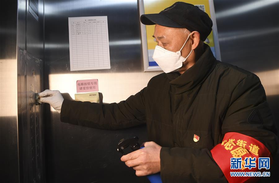 2月19日,龙塔街道紫福路社区党员志愿者在对居民小区的电梯按钮进行消毒。 自新冠肺炎疫情发生以来,重庆市渝北区龙塔街道积极组织和发动社区工作人员、社区志愿者等基层力量,参与到宣传疫情防控、了解居民健康状况、服务居家观察人员、卫生消毒等工作中,在防疫同时为居民提供服务。 新华社记者 王全超 摄