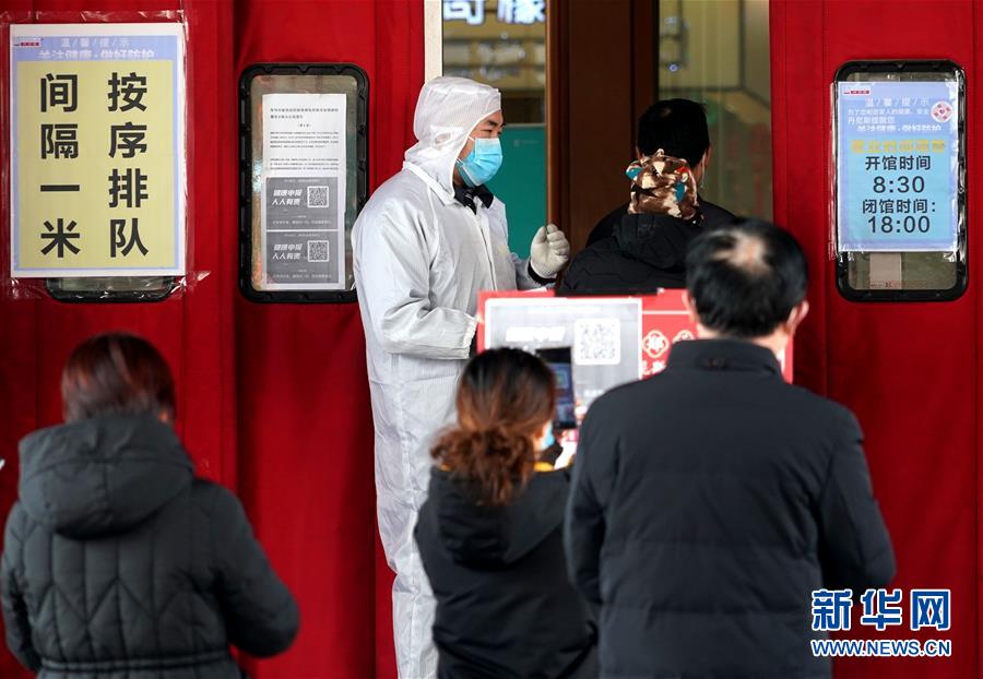 2月19日,市民在郑州市一家超市门口扫码。新华社记者 李安 摄