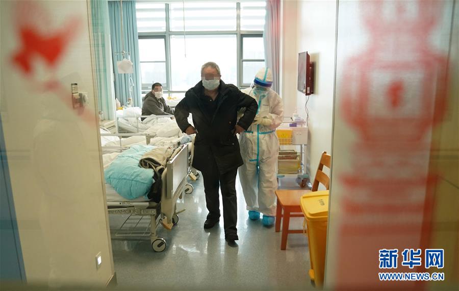 2月18日,护士边关月(右)搀扶一名老年患者去做检查。 新华社记者 王毓国 摄