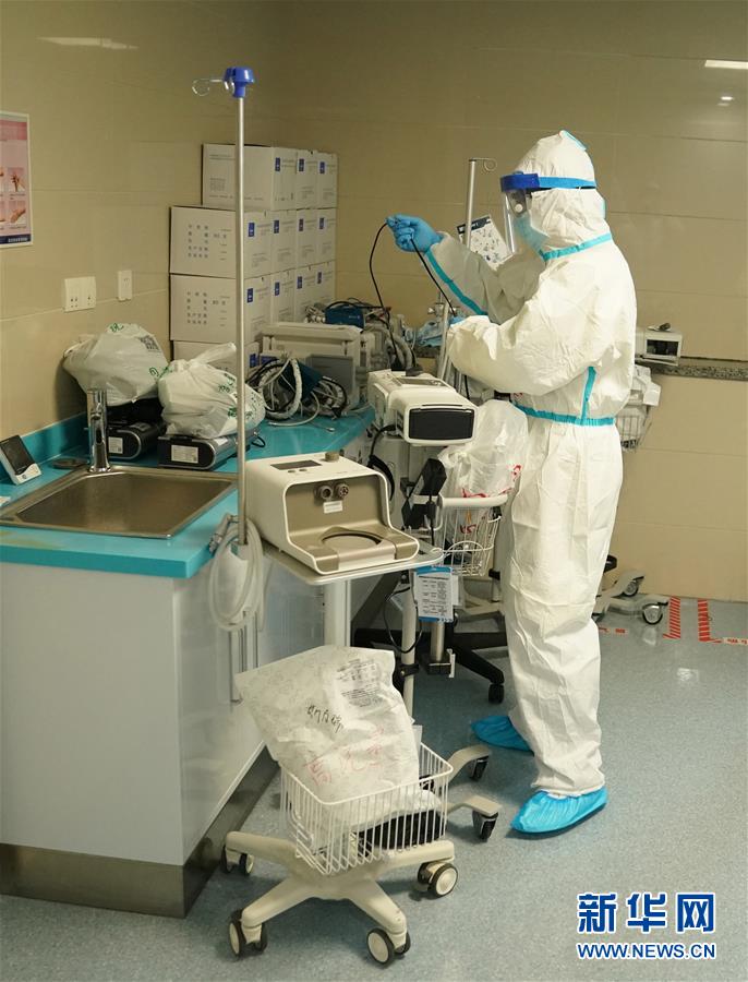 2月18日,护士顾权在整理呼吸机。新华社记者 王毓国 摄