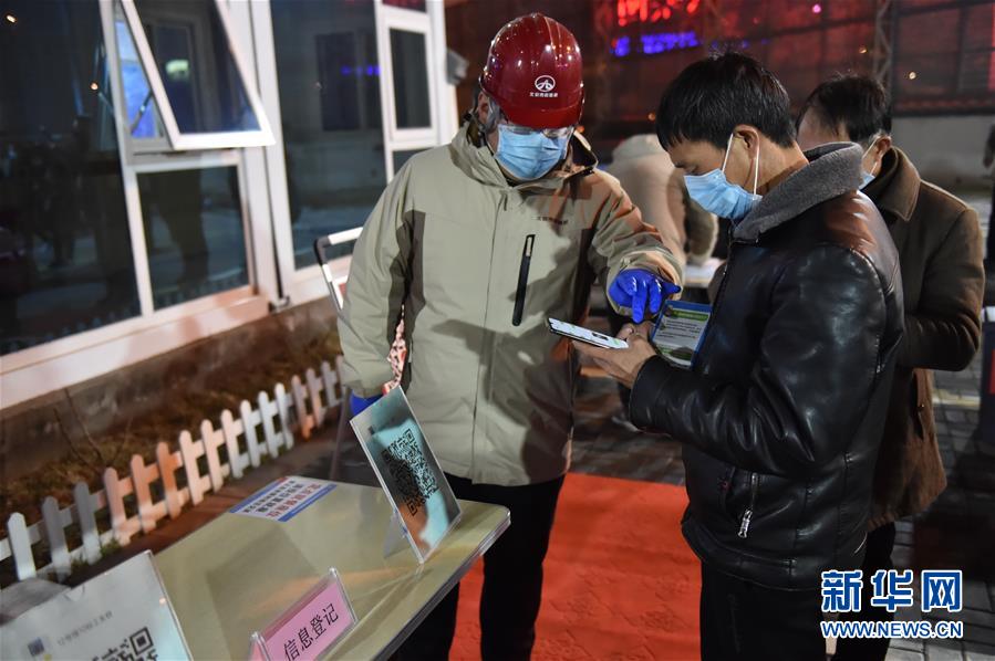 2月20日,工作人员指导返岗务工人员扫二维码进行个人信息登记。 当日,30名来自四川广元的务工人员乘坐返岗专车抵达北京市政路桥市政集团四公司地铁12号线10标项目所在地,他们是疫情期间该项目以“点对点”的方式接来的首批返京务工人员。抵达后,务工人员第一时间接受测温、消毒等防疫措施,并将进行为期14天的隔离观察。 新华社发(陈钟昊 摄)
