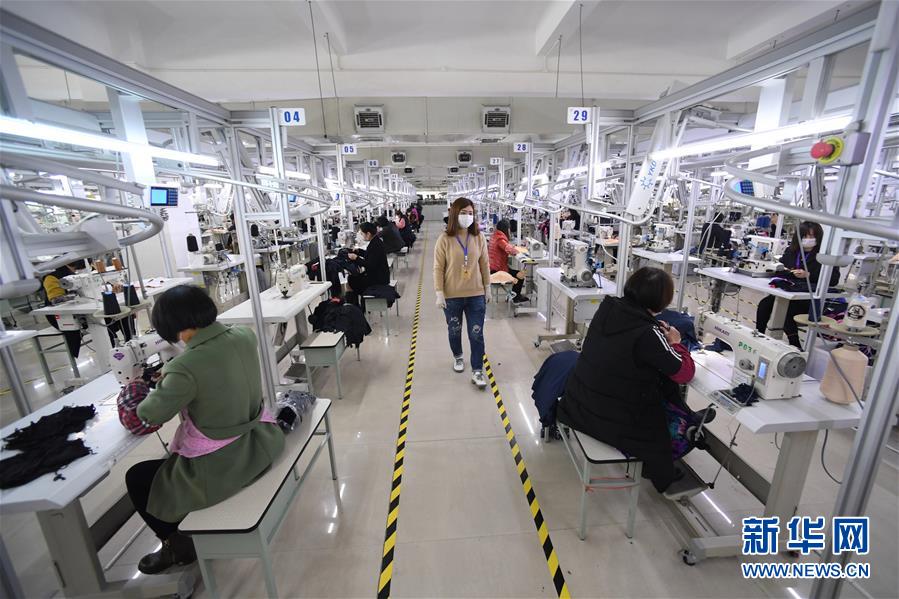 2月20日,福建省晋江市号手服饰有限公司员工隔位而坐,生产泳装产品。 福建泉州晋江市是制造业重镇和外来务工人员集中地区,全市外来人口超过百万。当地政府严格落实各项新冠肺炎疫情防控措施,建立市镇村企四级健康管理中心,加强返岗员工健康管理,确保员工在安全防疫的前提下有序上工上岗。同时,政府统筹协调各企业通过线上招聘、点对点劳务对接、劳务补贴等措施缓解企业用工难。截至2月18日,晋江市规上工业企业开工1237家,开工率72.3%,商贸企业已复工518家。 新华社记者姜克红摄