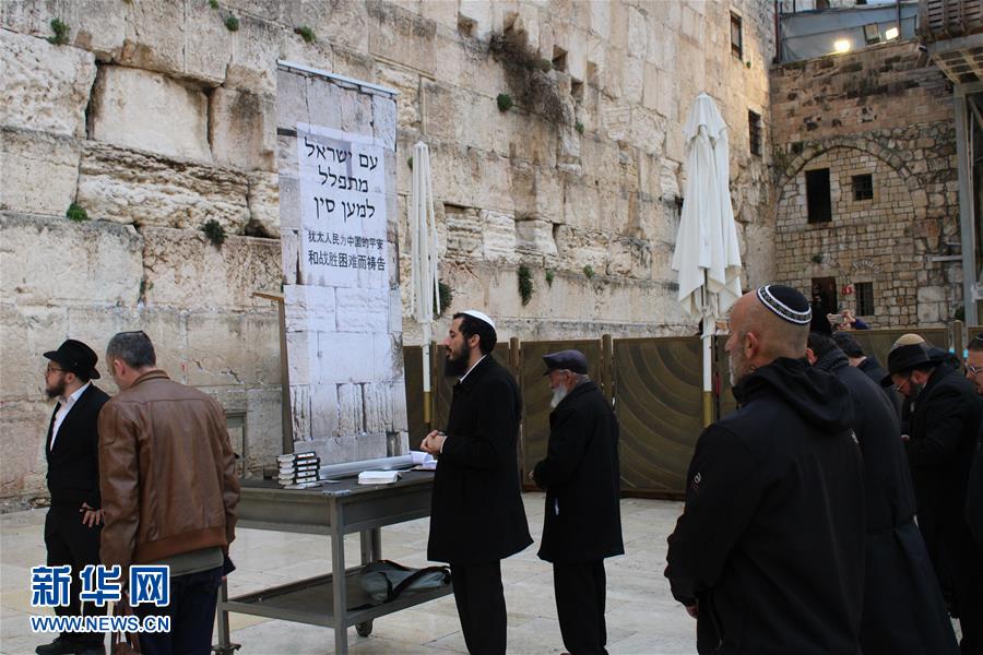 2月16日,在耶路撒冷老城的西墙广场,民众参加为中国祈福的活动。 新华社记者 尚昊 摄