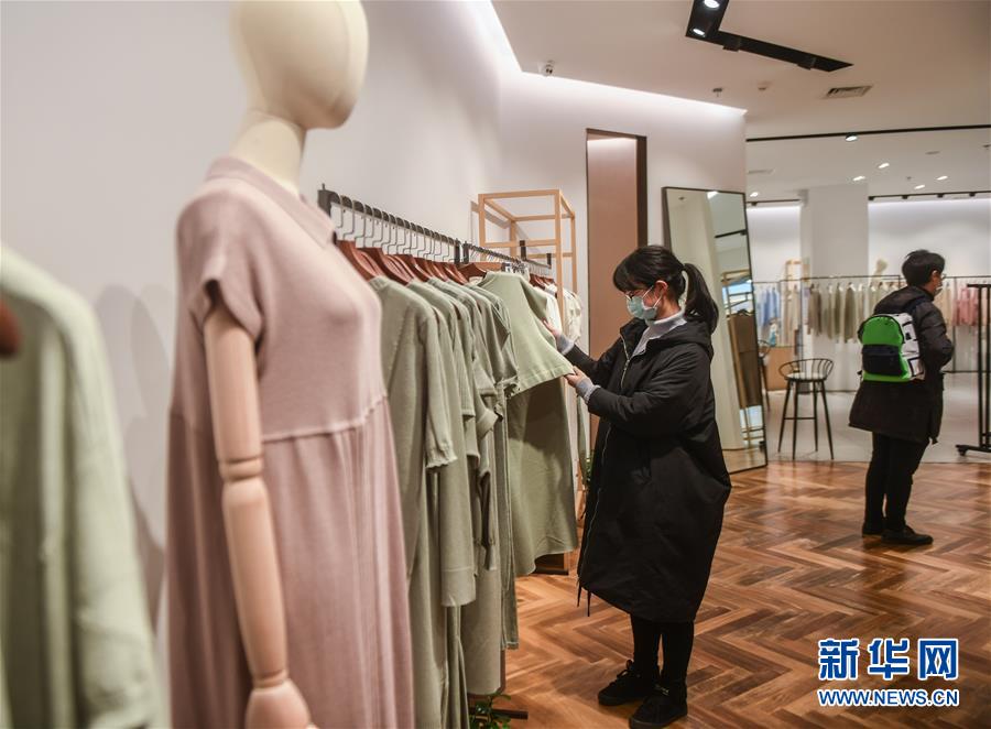 2月21日,顾客在濮院羊毛衫市场内选购新款春装。 当日,浙江省桐乡市濮院羊毛衫市场迎来农历新年后的全面复市,濮院羊毛衫市场下属的包括濮院时尚中心、国贸名品港、世贸大厦、国际时装城等在内的20个市场交易区重启线下交易,共有3000多经营户已经进场营业。 从2月15日开始,濮院羊毛衫市场就已实现“线上复市”,开辟网上市场空间,带动企业复工复产。目前该市场通过平台直播、电商平台、自有平台等线上交易模式,已达成总成交额1.3亿元人民币。按照防疫要求,濮院市场细化为20个闭环管理区块,在各个出入口设立了检查点,对进入市场的经营户、采购商及市场从业人员进行体温测量,落实各项疫情防控措施。 新华社记者 徐昱 摄