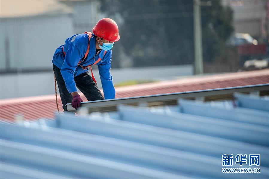 2月21日,工人在昆明轨道交通4号线广卫停车场项目工地施工。 近日,昆明轨道交通4号线广卫停车场项目工地开始复工建设。为做好新冠肺炎疫情防控,中铁上海局六公司在工地内采取定时测量体温、定时消毒、分散就餐、设置隔离观察区等方式,保障建设工作正常进行。 新华社记者胡超 摄