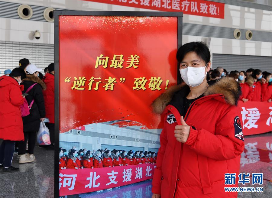 2月21日,河北省第八批支援湖北医疗队队员在出发前拍照留念。新华社记者 牟宇 摄