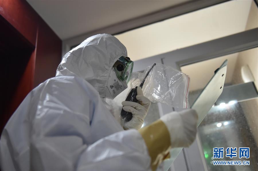 2月21日,护士陈曼怡通过对讲机与前台沟通留观人员房间生活物资保障事宜。新华社发(陈钟昊 摄)