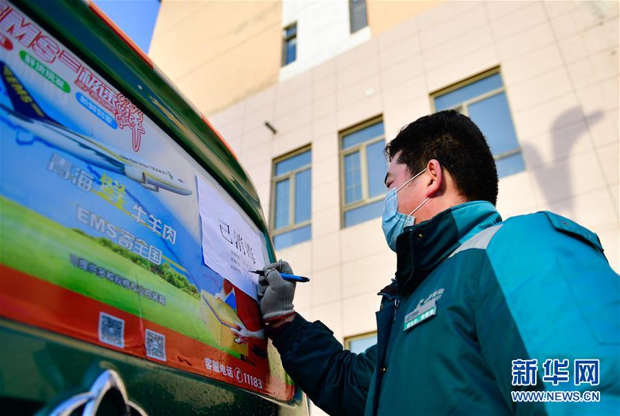 2月22日,中国邮政集团有限公司西宁市分公司海湖新区营业部工作人员填写车辆消毒记录。 近日,随着复工复产,物流配送逐步恢复正常,物流企业配送量加大。中国邮政集团有限公司西宁市分公司在做好防疫同时,提高服务效率,做好配送服务,保证疫情防控期间居民需求。 新华社记者张龙摄