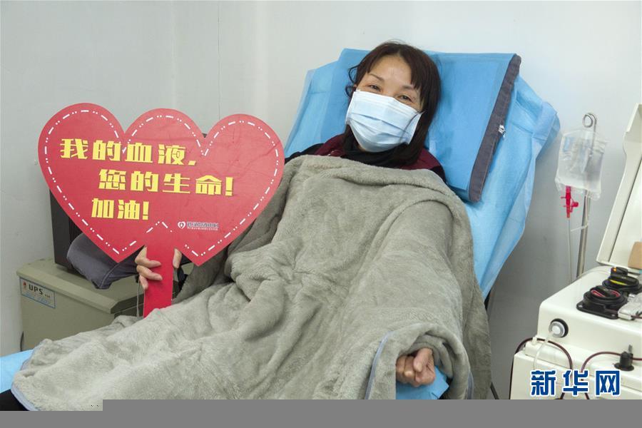 2月17日,在武汉血液中心的中国医学科学院CPnCoV项目组,康复患者、来自汉口医院的护士蔡桃英在捐献血浆。她在2月22日重新返回医院上班。 近日,武汉市汉口医院在工作中感染新型冠状病毒的多名医护人员经过治疗康复后,主动返回各自岗位,继续与病魔战斗。据统计,该院已经有十余位康复的医护人员陆续返岗工作。 新华社记者 才扬 摄