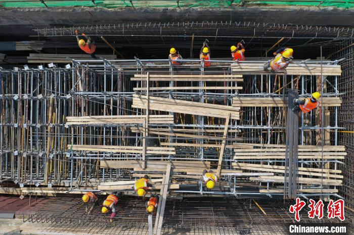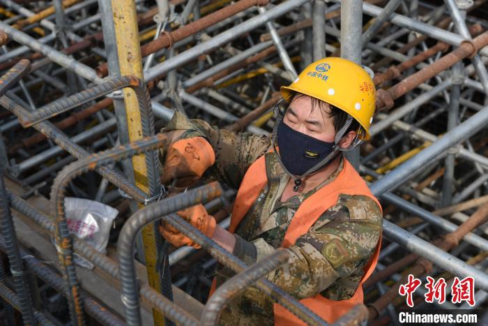 工作人员在青龙寺车站绑扎钢筋。 韩正阳 摄