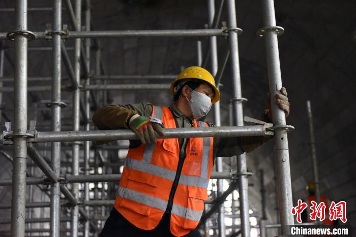 2月23日,中铁七局西安公司工人在西安地铁5号线青龙寺车站施工。当日,由中铁七局承建施工的西安地铁5号线项目正式复工,项目部采取人员先到岗、先隔离、早上岗的措施,严格落实疫情防控工作。