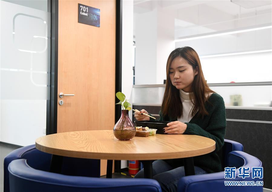 2月24日,中科创达软件股份公司的员工在就餐区域吃午餐。新华社记者 任超 摄