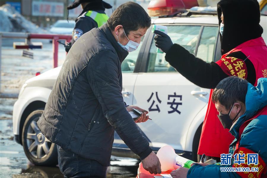 2月24日,工作人员在哈同高速公路哈尔滨收费站为车辆人员登记、测体温。 当日,黑龙江省因疫情影响临时封闭的高速公路收费站全部解除封闭,恢复通行,为支持复工复产、维护正常经济社会秩序提供保障。 新华社记者 王松 摄