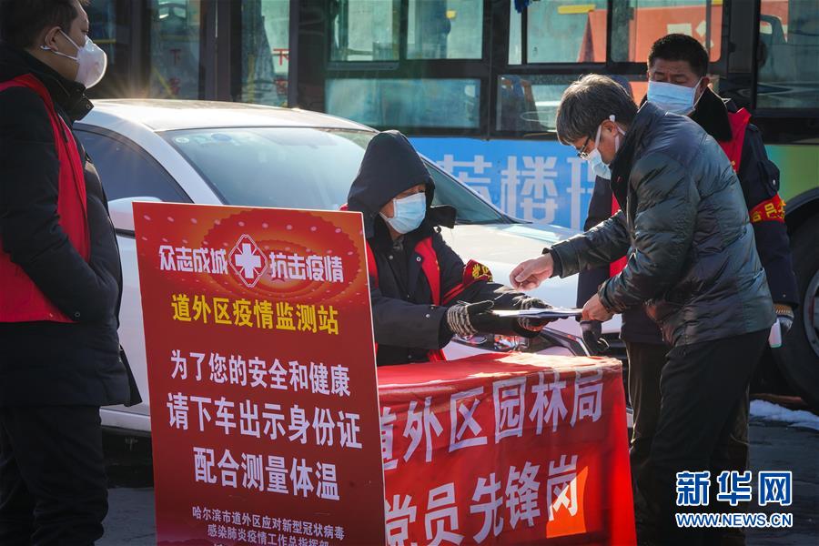 2月24日,工作人员在哈同高速公路哈尔滨收费站为车辆人员登记。 当日,黑龙江省因疫情影响临时封闭的高速公路收费站全部解除封闭,恢复通行,为支持复工复产、维护正常经济社会秩序提供保障。 新华社记者 王松 摄