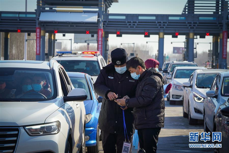 2月24日,工作人员在哈同高速公路哈尔滨收费站为车辆人员登记。 当日,黑龙江省因疫情影响临时封闭的高速公路收费站全部解除封闭,恢复通行,为支持复工复产、维护正常经济社会秩序提供保障。 新华社记者 王松 摄