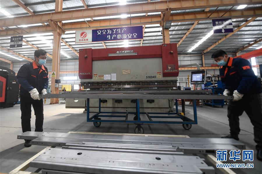 2月24日,工人在苏迅电梯有限公司生产车间作业。 近日,浙江省湖州市南浔区菱湖镇在做好新冠肺炎疫情防控的前提下,积极推进企业复工复产。截至目前,菱湖镇60家规上企业已经实现复工。 新华社记者 黄宗治 摄