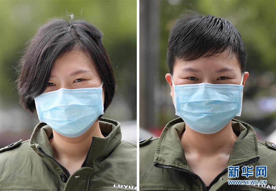 2月24日,汉口医院呼吸三科护士吴汉娣理发前后的对比照(拼板照片)。当日是农历二月初二,5位发型师在汉口医院医疗队驻地为该院百余位战斗在“抗疫一线”的医护人员免费理发。 近期,由近百位发型师组成的志愿者团队在武汉为医护人员提供义务理发服务,据了解,该团队一周以来为近4000名医护人员义务理发。 新华社记者 李贺 摄