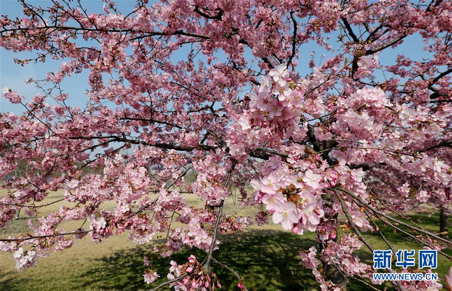 这是2月24日在上海松江辰山植物园内拍摄的河津樱。 近日,上海松江区辰山植物园内的河津樱绚丽绽放,花团锦簇间一派盎然春意。 新华社记者 方喆 摄