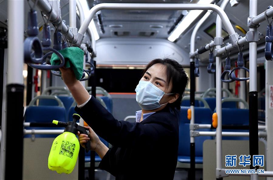2月24日,黄菲在发车前给车辆消毒。 1986年出生的黄菲是郑州公交二公司B38路公交车车长。她所驾驶的线路是郑州市公交主干线之一,途经76个站点。为了做好新冠肺炎疫情防控工作,上岗前的个人防护、测量体温,发车前的车辆消毒、填写记录表,每一项她都认真完成,没有丝毫马虎。“在这个特殊时期为大家提供出行便利,只要乘客有需要,我就有责任坚守到底。”黄菲说。 新华社记者 李安 摄
