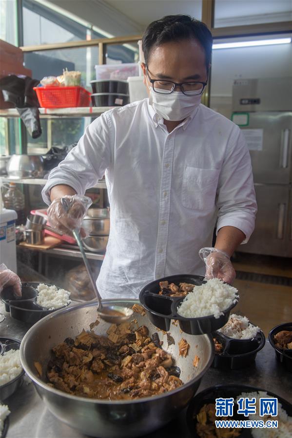 2月25日,王光华打包要送的快餐。 王光华是海口一家餐厅的老板,在新冠肺炎疫情发生后,他看到很多一线的医护人员吃热饭菜有困难的消息,于是决定给海口市多家医院等免费送餐。自2月8日以来,王光华的餐厅已经给医护人员和社区防疫人员等送餐近2000份。 新华社发(张丽芸 摄)