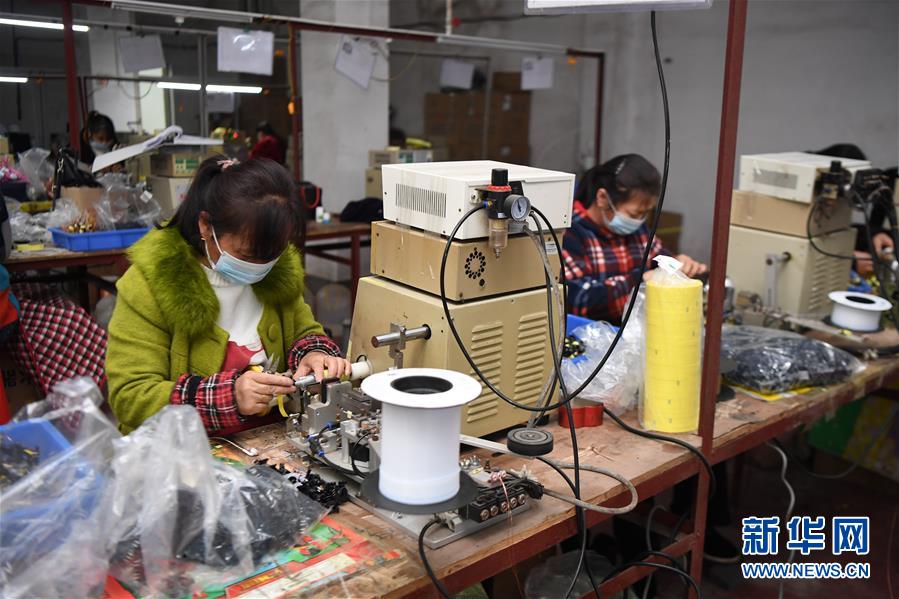 2月25日,在安化县江南镇骏嘉达电子有限公司扶贫车间,工人完成高频变压器绕线工序。 近日,湖南省益阳市安化县的31家扶贫车间在积极做好新冠肺炎疫情防控的同时,有序组织复产复工,已有共计370余人返回扶贫车间工作岗位,在保障市场需求的同时,确保贫困人口获得稳定收入。 新华社记者 薛宇舸 摄