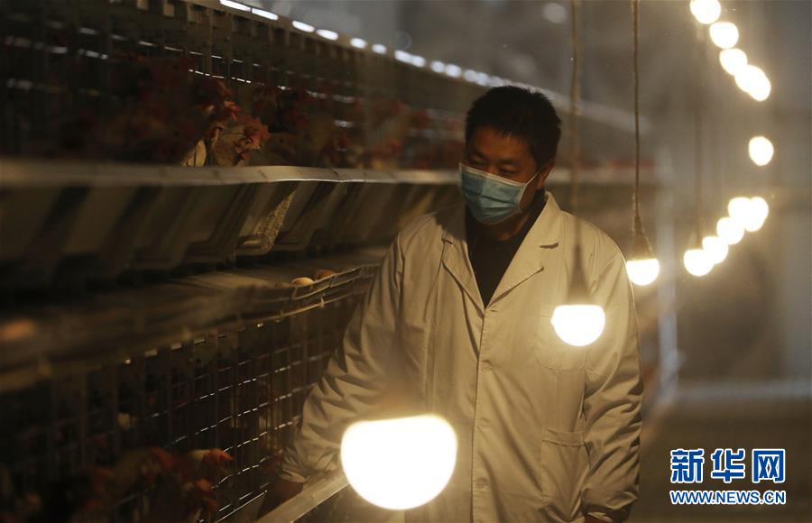 2月25日,在河南季旦鲜农业发展有限公司,工作人员查看蛋鸡笼养设备运行情况。 连日来,河南省焦作市武陟县根据市场供需动态和疫情防控要求,积极为当地畜禽养殖、加工龙头企业协调饲料供应,保障运输畅通,指导畜禽企业有序复工复产,保证肉、蛋、奶等生活必需品市场供应充足。 新华社发(冯小敏 摄)