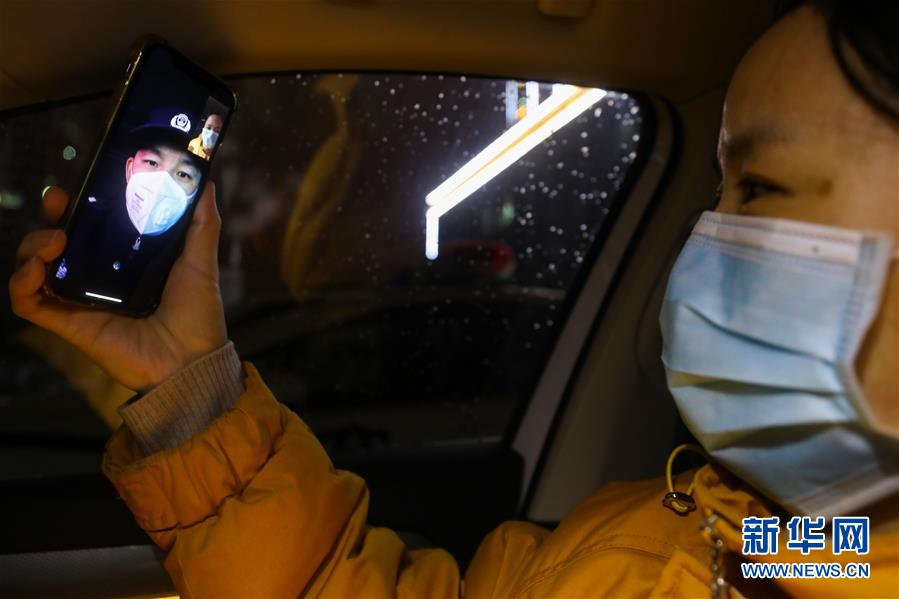 武汉市火神山医院警务室民警燕占飞与妻子视频(2月6日摄)。 新华社发